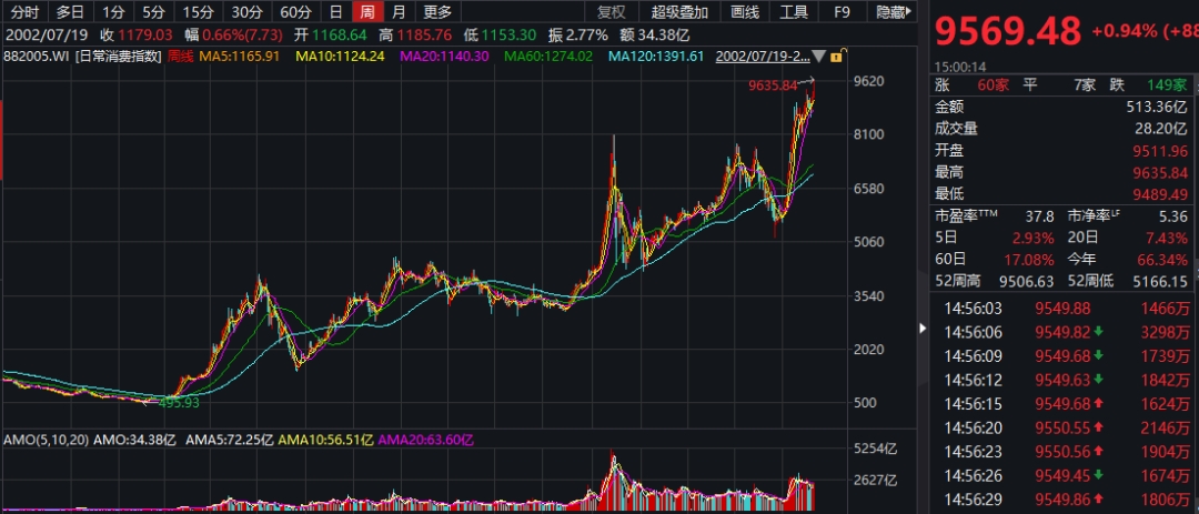 而从指数来看,日常消费指数已经创出历史新高,市场对茅台等股票的信仰可能在强化。要知道贵州茅台上市之后的涨幅,在同等条件下是可以秒杀房价的。