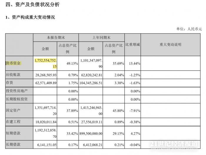 而科迪乳业8月29日晚刚刚披露的半年报显示,上半年账上依然躺着17.5亿元货币资金,占总资产比例49.13%,比上年同期末增加13.44%。