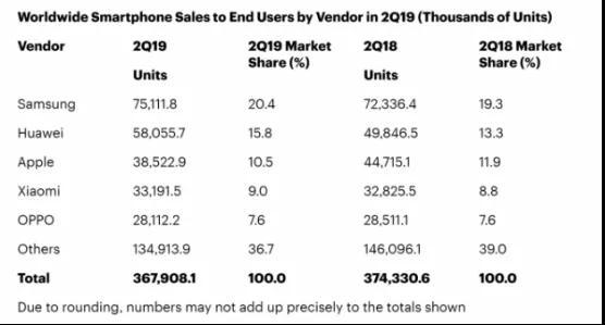 日前,全球著名的数据分析机构Gartner发布了2019年第二季度的全球智能手机销售的具体数据。从这份数据来看,我们会发现目前全球手机市场仍然处于下滑的趋势。并且,同比2018年的销量数据下滑了1.7%的程度,从3.74亿台下降到了如今的3.67亿台的数据。