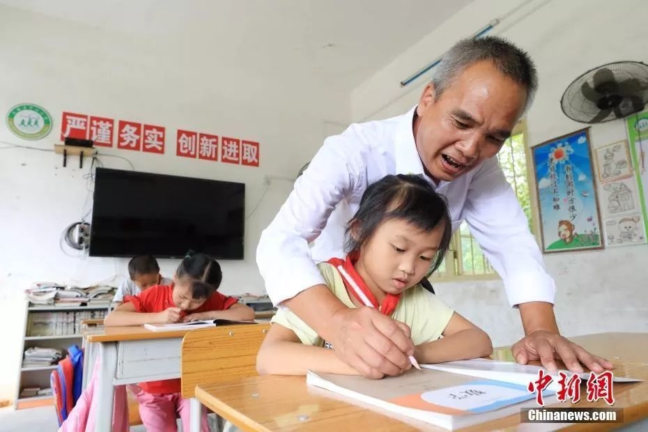 老师在教室里给小学生们辅导作业。中新社记者 王中举 摄