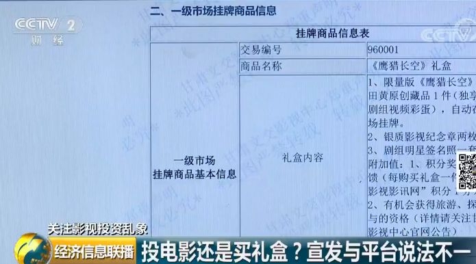 根据公告内容,4部电影的情况大同小异,而《鹰猎长空》等电影的礼盒要等到真正上映后3个月才会交割,因此投资者都没有见过实物,为此记者来到了甘肃文交影视中心了解情况。