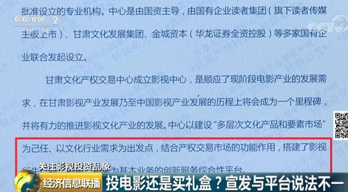 投资者 小成:资金打到甘肃文交影视中心的对公账户,就是以购买礼盒的形式参与票房分红。当时感觉还是比较靠谱的。