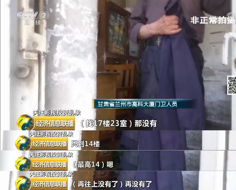 在调查中记者注意到,所有赠送的积分都是在一家名为“蓝娱影视影讯网”的网站上领取,具体兑换票房方式也只在该网站上公告。但是,网站上客服电话与甘肃文交影视中心完全相同,拨打后对方称这只是影视中心制作的一个网站。当记者寻找蓝娱影视影讯公司在启信宝上的注册地址——甘肃省兰州市城关区高科大厦17楼时,却发现楼里的正常办公楼层只有14层。