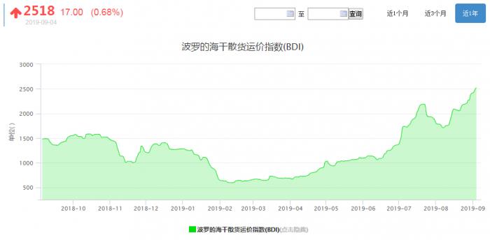 9月4日,BDI指数报2518点,与前一交易日上涨0.68%,续刷近9年的历史新高。