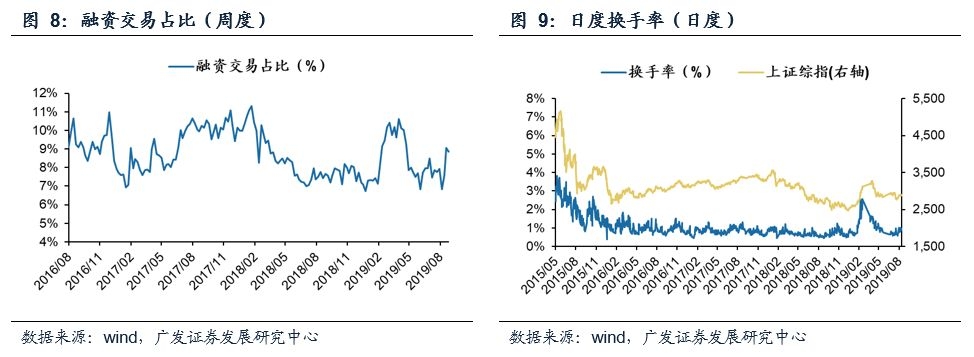 (1)融资交易占比:上周为8.8%,前一周为9.1%;