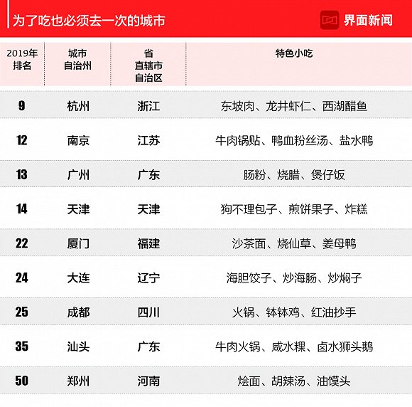 榜单上的有些城市不仅好玩,还很好吃。“粉丝”中吃货比例不在少数。对于游客来说并不只有名胜古迹能令人神往,特色小吃也可以扣人心弦,因此有一些城市被称为“为了吃也必须去一次的城市”。