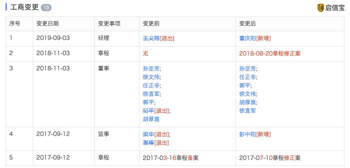 近日,据启信宝数据显示,上海华为技术有限公司发生人事变更,华为上海研究所所长王义翔不再任公司总经理一职,由董庆阳接任。资料显示,董庆阳之前担任华为技术有限公司南京研究所所长。