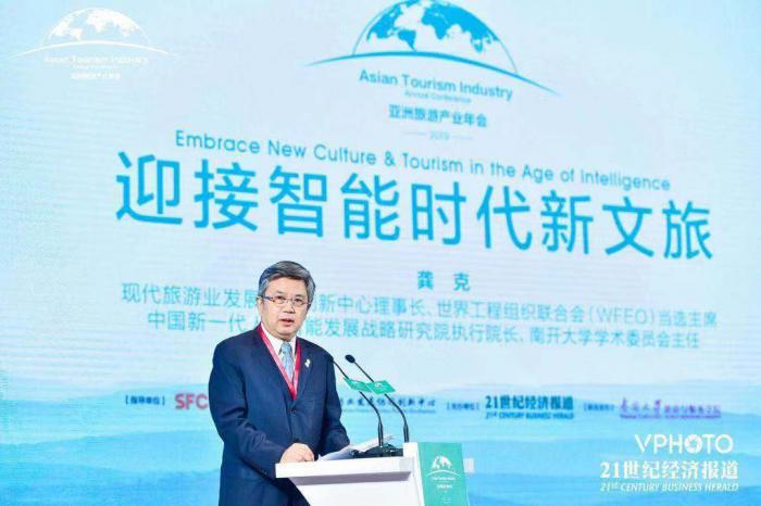 现代旅游业发展协同创新中心理事长、世界工程组织联合会(WFEO)当选主席、中国新一代人工智能发展战略研究院执行院长、南开大学学术委员会主任龚克在演讲中表示,智能时代是广义的互联网,包括移动互联、物联网、大数据、云服务、端服务等。目前,很多的文化消费都是在网上从事的,未来,技术在深度拓展和发掘目的地文化、历史、自然和审美价值中,还会发挥更大的作用。