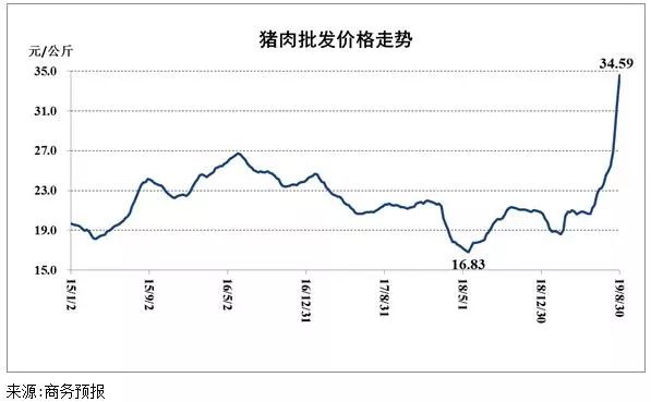 3日下午,商务部发布的最新数据显示,上周(8月26日至9月1日),猪肉批发价格为每公斤34.59元,涨幅为8.9%——这已经是猪肉批发价格连续第13周上涨。