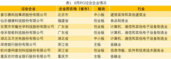 2019年8月A股IPO整体情况
