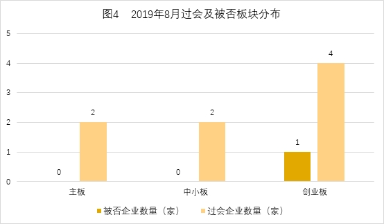 从被否板块情况分布来看,2019年8月申报创业板的企业有5家,其中1家被否。