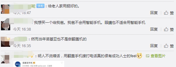 很多网友在诺基亚手机官微下留言,“诺基亚卖的不是手机是情怀”,“有当年熟悉的感觉”。