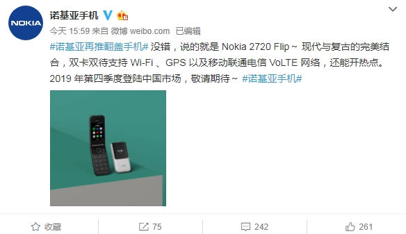 在华为、三星、小米等头部厂商争相发布旗下首款5G手机的同时,曾经的全球手机霸主诺基亚,近日公告推出复古的翻盖手机!