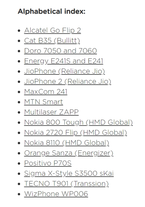截止目前,搭载有KaiOS系统的手机有17款,比如在印度最火热的JioPhone、主要面向中东和非洲市场的MTNSmart等。包括诺基亚2720 Flip在内,诺基亚有3款手机支持KaiOS,可以说是最支持KaiOS的厂商之一了。