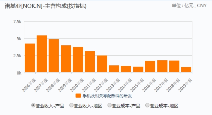 事实上,成立于1865年的这家百年企业,自2006年以来,诺基亚营收最高达到5400多亿元,净利润近800亿元,如今是连年亏损,营收滞涨,公司发展乏力。