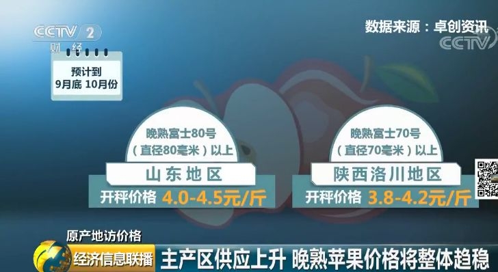 卓创资讯分析师 杨军:预计今年晚熟苹果的开秤价格与去年同期开秤价格基本持平。随着收购进行,后期价格或有回落。今年苹果的价格总体是可控的,出现剧烈波动的概率不大。