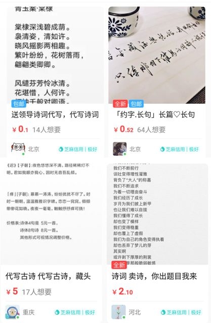 比如代写歌词、打油诗,甚至说唱freestyle的各路“文豪”,这商业思维与《武林外传》里试图靠写家书、情书发家致富的吕秀才一拍即合。