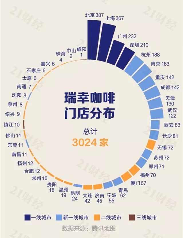 瑞幸咖啡有3024家;