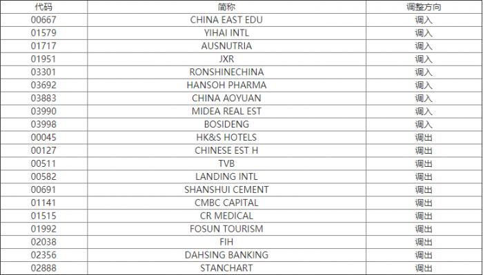 9月8日,上交所公告称,根据《上海证券交易所沪港通业务实施办法》有关规定,沪港通下港股通股票名单发生调整并自下一港股通交易日起生效。本次调整调入中国东方教育、颐海国际等。