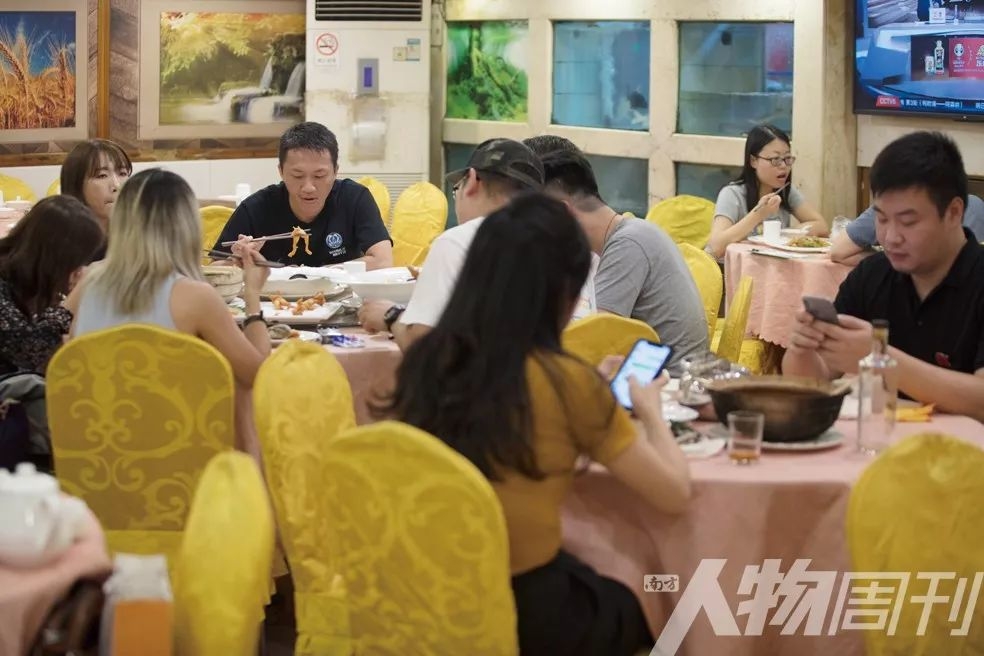 入室经营后,档口逐渐安宁,客人的构成也从后生“打工仔”与赤膊大汉转变为商人、运动员、写字楼白领。异地重生的东海生辉转变了经营策略,将目标市场定位于中高端人群。饭桌上的排场登时大了起来。做生意的人,往往带上一帮朋友吃饭,晚饭吃完又转场去卡拉OK,唱完歌再回头宵夜。那是劳志开的好日子,“他们就跟我说,阿志啊,你有什么海鲜都给我写下来,都上!”最旺时,下午5点到凌晨3点,300平米的店内始终坐满人,没有一桌闲置。