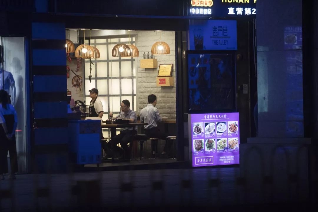 兴盛汇上方是高级住宅区,几乎每周都会有警察因投诉过来,投诉多了,就禁止外摆,再到后来清掉了外面的摆设,街道的商会也撤走,盛况不复从前。原本的酒吧、迪厅,现在是烤肉店、牛肉火锅和理发店。