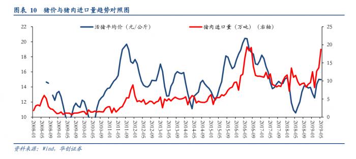 总体而言,华创证券认为,随着新一轮猪周期开启,可以预见的是猪肉进口量将上升。2019年1-5 月,我国共进口猪肉 65.82 万吨,其中5月份单月猪肉进口量达到18.75万吨,占前5个月进口量的28.5%,创下了自2016年6月以来的单月进口量新高。