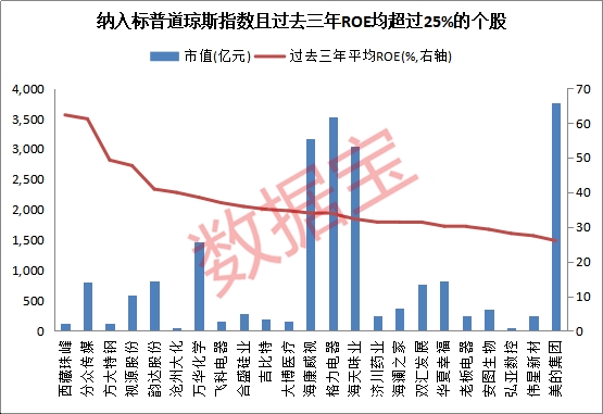 入选A股的投资价值如何?以净资产收益率(ROE)来看,59股2018年ROE超过25%,23股过去三年ROE均超过25%,且这23股过去三年净利润复合增速均大于0,韵达股份、方大特钢及合盛硅业净利润复合增速均超100%。
