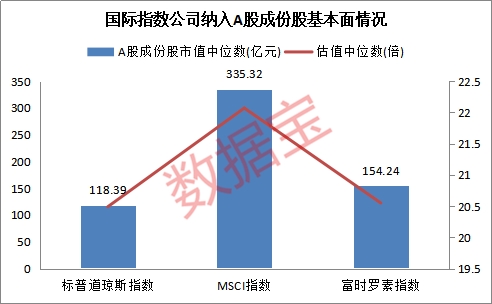证券时报·数据宝统计显示,创业板的最新市值中位数不足40亿元,滚动市盈率中位数高达37.4倍;而纳入标普道琼斯指数的A股市值中位数超百亿,且估值中位数不足21倍,低于全部A股中位数26.44倍。与MSCI、富时罗素相比,标普道琼斯指数的A股成份股估值中位数、市值中位数均最低。