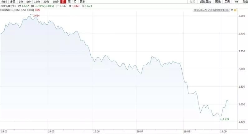 此外,9月欧美各国债券收益率频繁释放出不良信号。9月3日亚市收盘后,英国、德国、意大利国债收益率同时创下历史新低。而美债收益率也保持低位运行,10年期美债收益率在8月PMI公布后一度下跌4个基点,创2017年7月以来新低。
