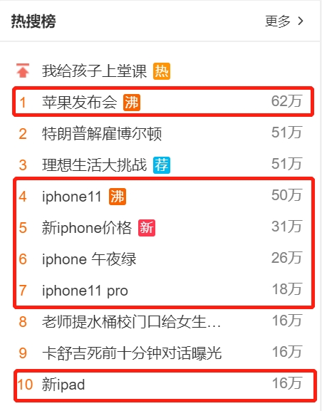 截止早晨六点,“苹果发布会”一词已冲上微博热搜榜榜首,近13亿人参与了话题讨论......