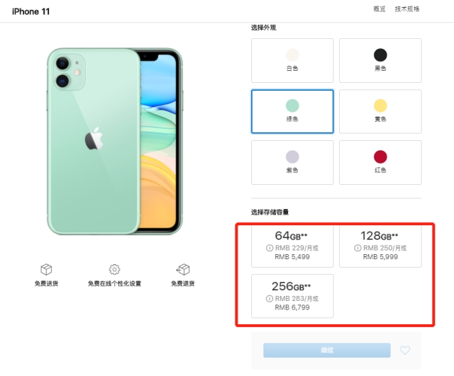 苹果这回首次在iPhone中引入了全新配色。其中iPhone 11拥有六个配色:绿色、紫色、黄色、白色、黑色及红色,其中绿色为新增;Pro版则拥有4款配色:午夜绿色、深空灰、银色、金色。
