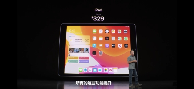 iPad方面,苹果正式发布将产品升级到第7代,其配备10.2英寸,350万像素的Retina显示屏;其搭载A10 Fusion芯片和最新的iPad OS系统,支持Apple Pencil,运行速度将是市面上主流PC的两倍以上,还拥有更强的广角和长焦特性,售价为329美元(约合人民币2340元)起,教育用户为299美元(约合人民币2127元),今天起接受预定,月底发货。