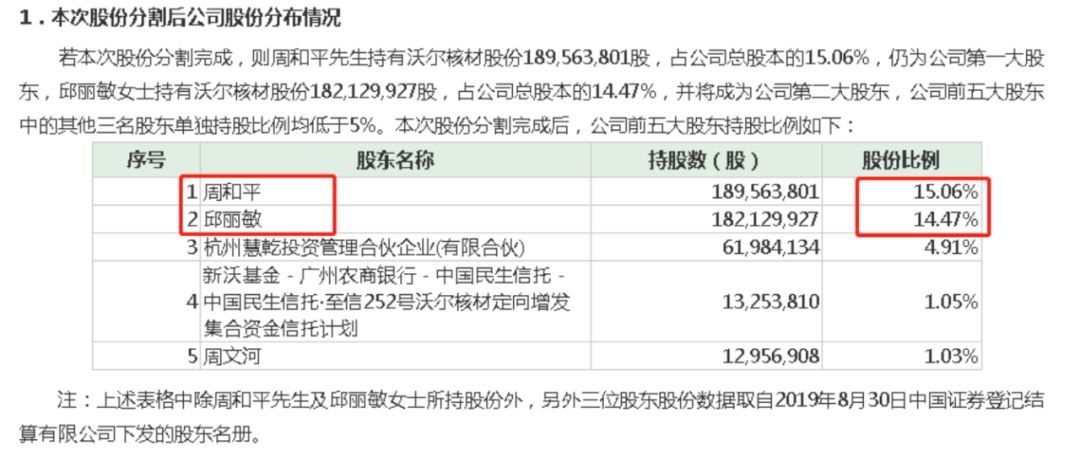 从沃尔核材的中报情况来看,彼时公司的前三大股东还是周和平、杭州慧乾投资管理合伙企业、深圳市沃尔达利科技企业,其持股比例分别为18.06%、3.23%和1.29%。其中周和平自身也持有沃尔达利公司35%的股权,其直接和间接持有沃尔核材股份19.19%的股份,属于绝对控股的位置。