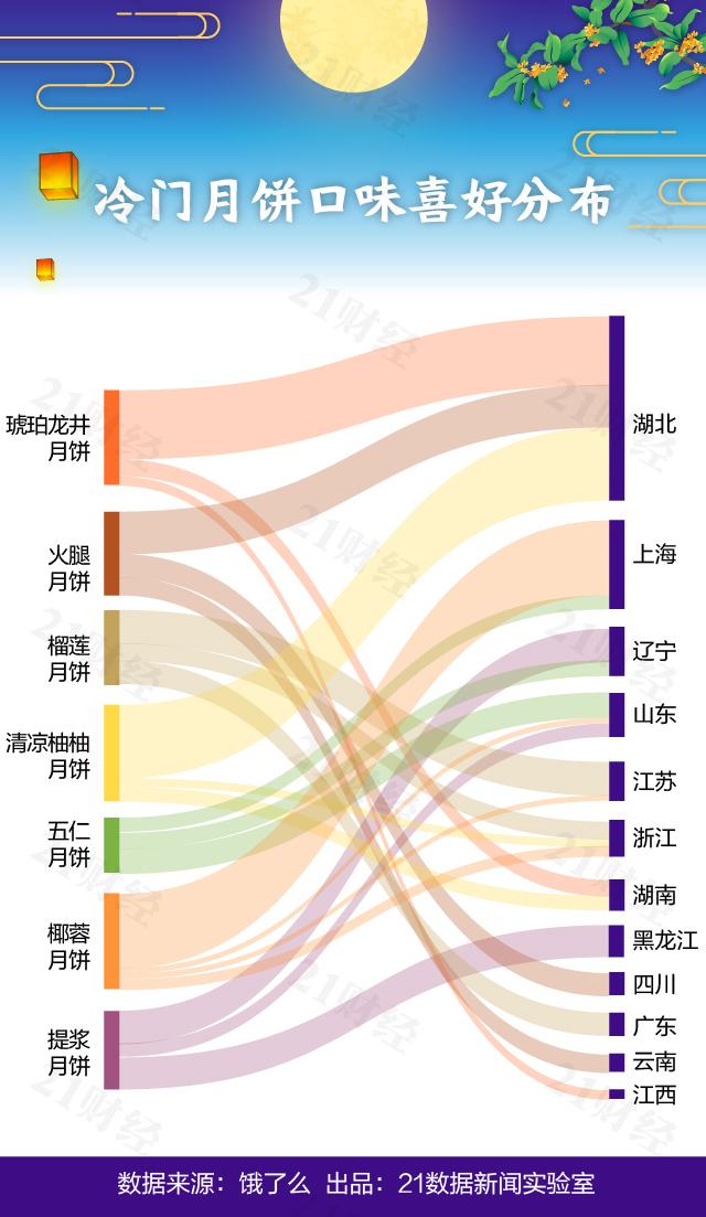五仁月饼虽然是热搜常客,被调侃多年,但在销量上却是冷门!据饿了么数据显示,五仁月饼与琥珀龙井月饼等排在了冷门月饼榜上,主要消费省份为山东、辽宁、上海,其中山东的占比最高,但也只有不到23%。
