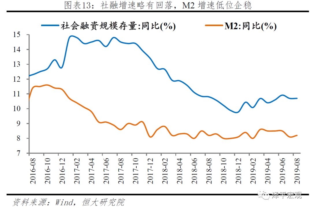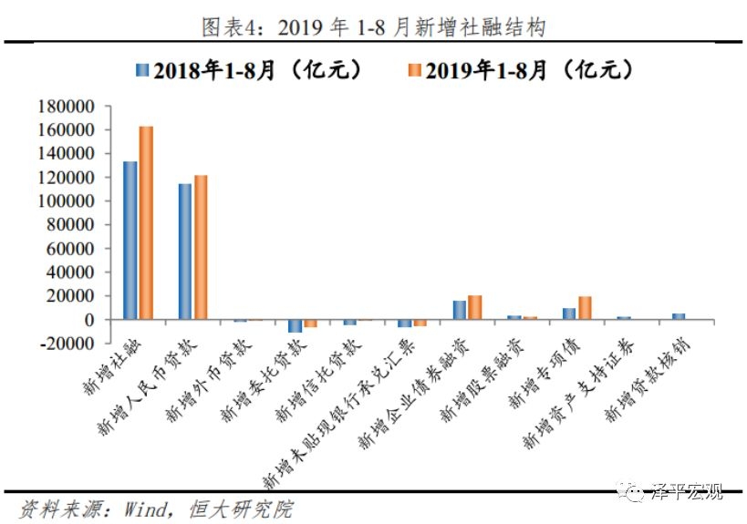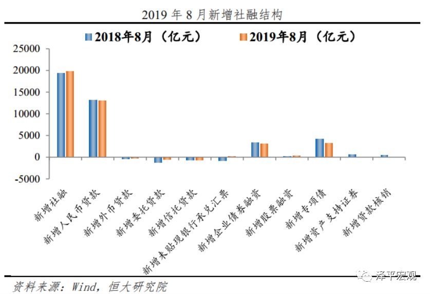 加大逆周期政策,8月社融增速持平。8月20日,LPR形成机制改革首次报价,1年期LPR为4.25%,比原来基准利率下降了10个BP。加大逆周期政策,8月新增社会融资规模1.98万亿元,同比多增376亿元,存量社融同比增速10.7%,与7月持平。