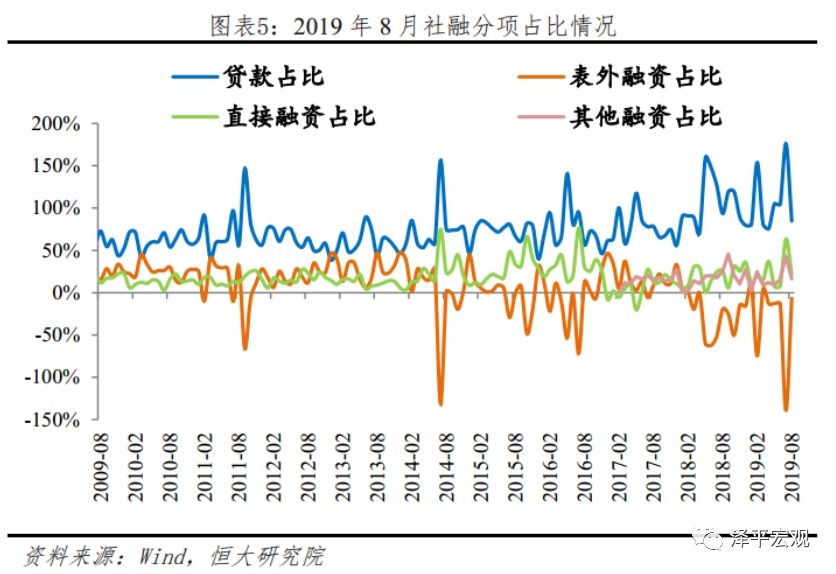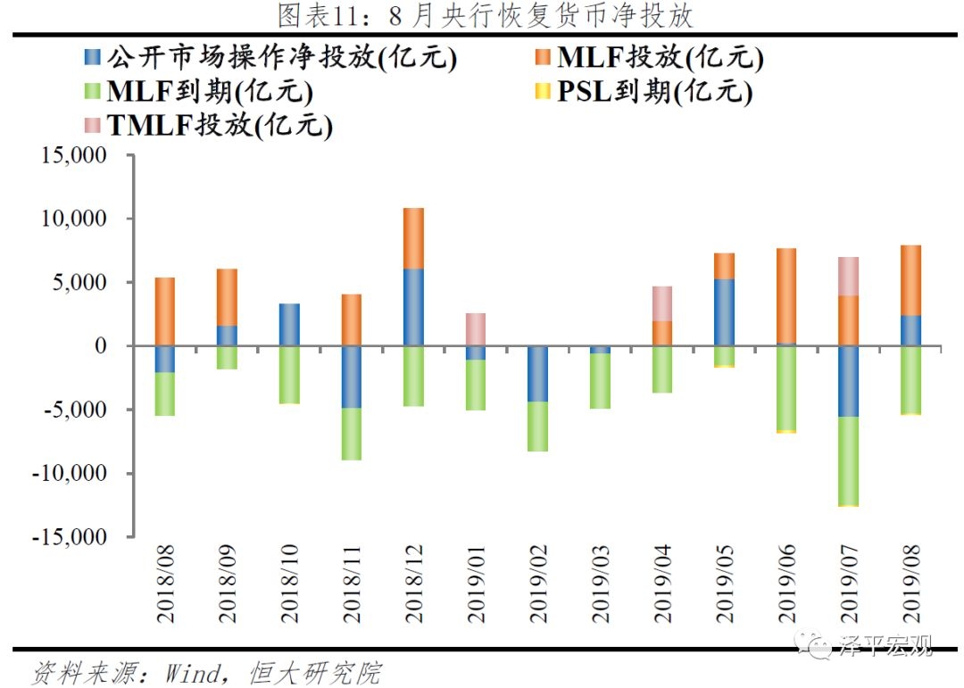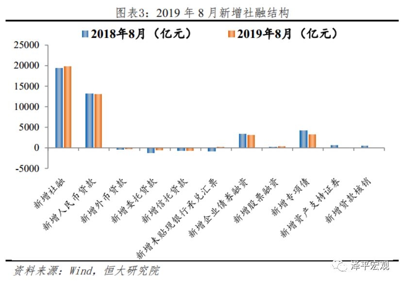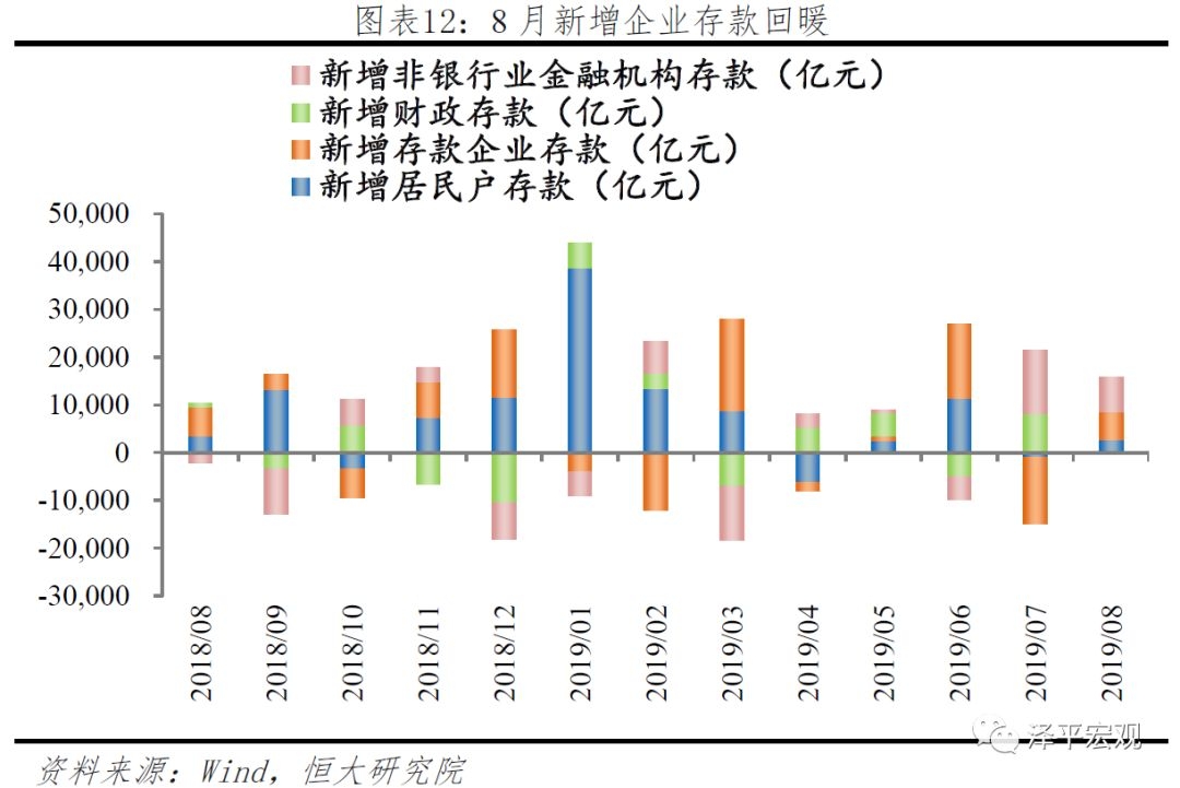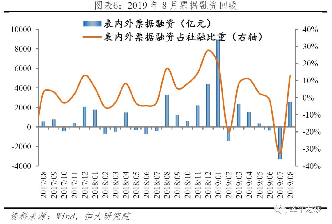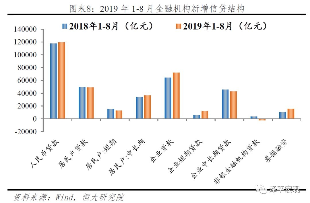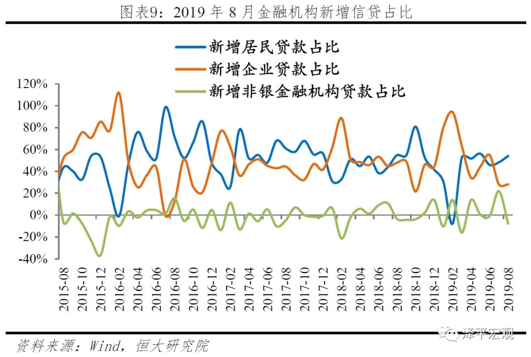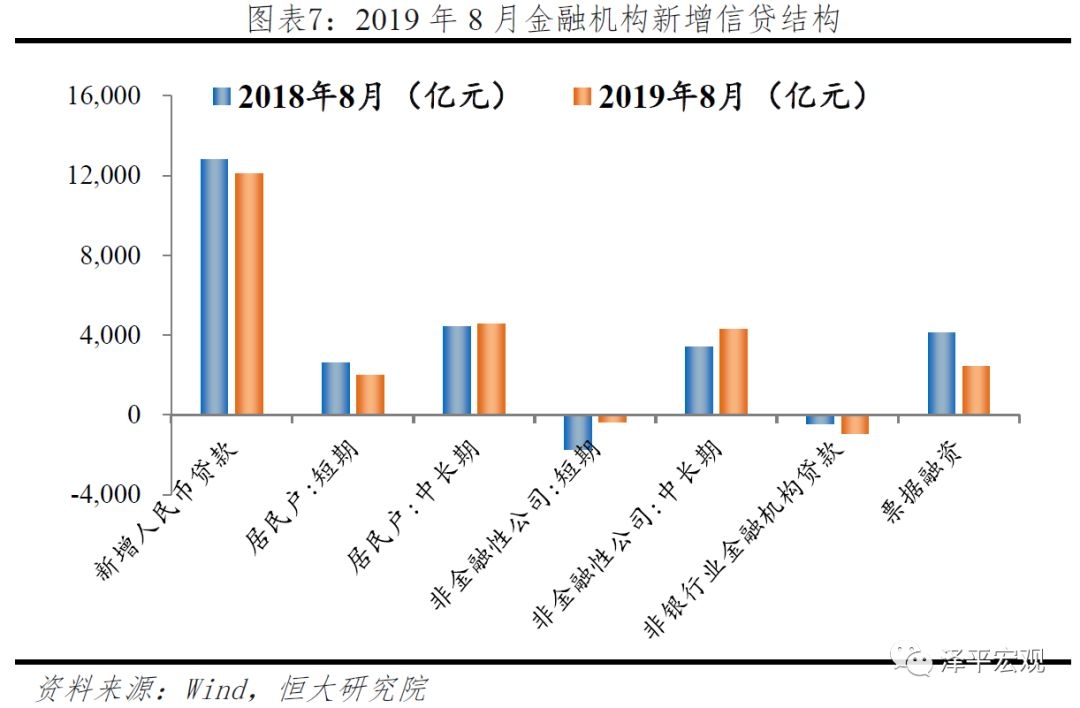 从结构来看,企业中长期贷款有所回暖,居民短期贷款、票据融资是主要拖累。企业中长期贷款的改善可能源于LPR改制,银行担忧贷款利率下行因而加速企业信贷投放,或透支下一阶段企业信贷。8月新增企业中长期贷款4540亿元,同比增加860亿元,占比35.4%,较7月提升了0.7百分点。新增居民贷款6538亿元,占比54%,较7月提升5.8个百分点。