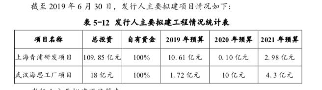拟建项目有2个,海青浦研发项目和武汉海思工厂项目,两者总投资为127.85亿元。