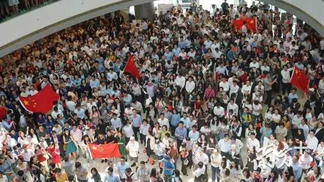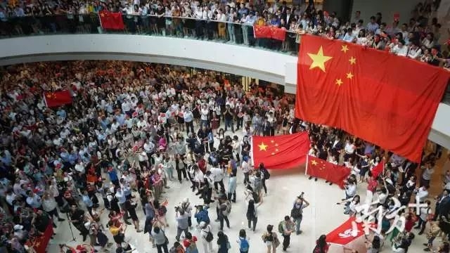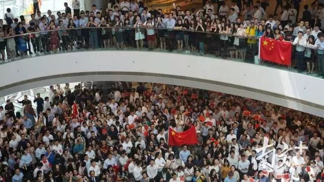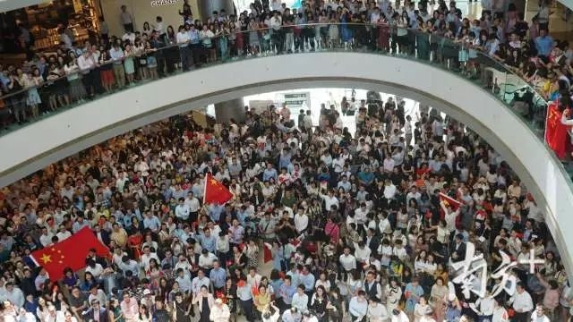中国加油!上千名香港市民在中环商场“快闪”集结合唱国歌