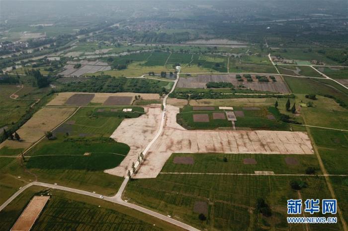 这是2019年6月23日无人机拍摄的位于浙江省杭州市的良渚国家考古遗址公园的宫殿区。 新华社记者 黄宗治 摄
