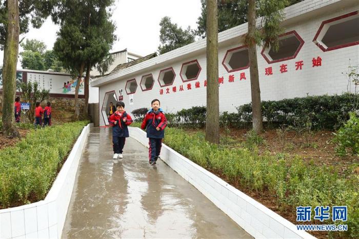 贵州省织金县金龙小学里的蹲式冲水卫生厕所(2018年10月23日摄)。 新华社记者 张玉薇 摄