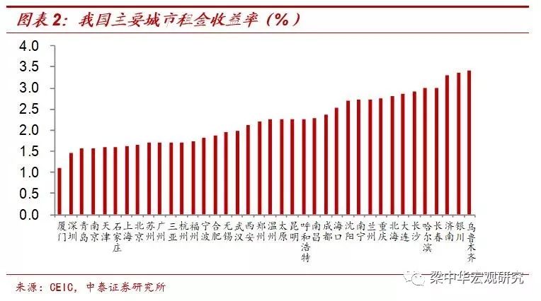 按照中金标准数据公司发布的住宅投资收益指数进行测算,过去十年我国房产的年化平均收益有14%,而其中来自纯粹租金方面的回报非常少。因为我国很多中小城市几乎没有租房市场,绝大部分城市房产的租金回报率都在3%以下,与14%的年化收益相去甚远。所以投资房产的收益主要来自房价的大幅上涨,也就是说我们赚的主要是资本利得的钱。这就像2014-2015年我国股市大幅上涨的时候,很多资金涌入股市,但他们赚的不是上市公司盈利分红的钱,而是股价上涨带来的资本利得。