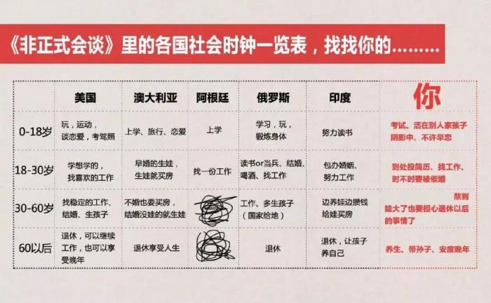 所有社会都有一个有意识或无意识的共识,决定了那些“人生大事”应该在何时发生,譬如何时上学、结婚、生子、退休等。