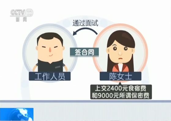陈女士通过面试后,与公司签了合同,并且上交了2400元食宿费和9000元保密费。之后,她按照公司的要求与另一位工作人员对接,没想到还得继续交费。