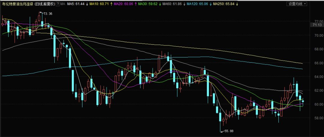 布伦特原油近期日K线图(上周跌幅2.10%)