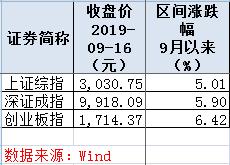 9月以来,A股出三大股指现了较大涨幅:上证综指5.01%、深证成指5.90%、创业板指6.42%。