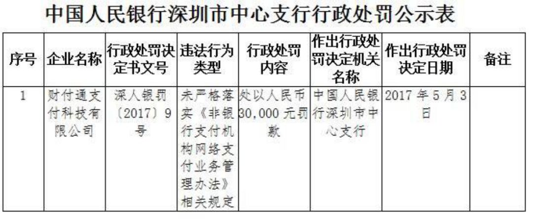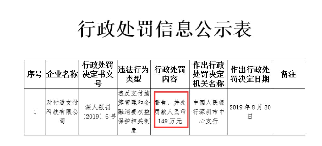 据了解,这是财付通2019年收到的首张央行罚单。