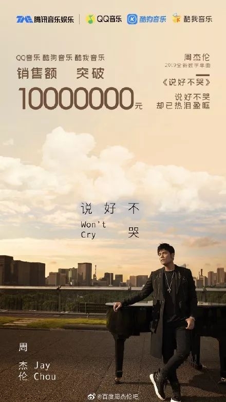 16日晚,周杰伦新歌《说好不哭》上线,上线不到两小时,周杰伦新歌单曲数字版销售总额突破一千万。