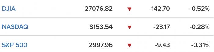 9月16日收盘,投资者担心油价暴涨将拖累全球经济增长,美股结束“八连涨”。截至北京时间9月17日4:00收盘,道琼斯工业平均指数跌0.52%,报27076.82点;纳斯达克综合指数跌0.28%,报8153.54点;标普500指数跌0.31%,报2997.96点。