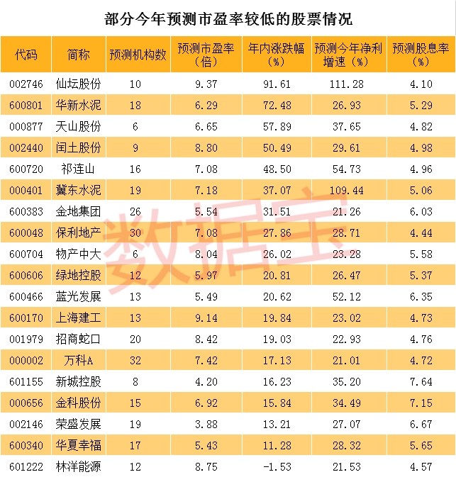 今年机构预测净利增速超20%、市盈率不足10倍、股息率超4%的股票,仅19只