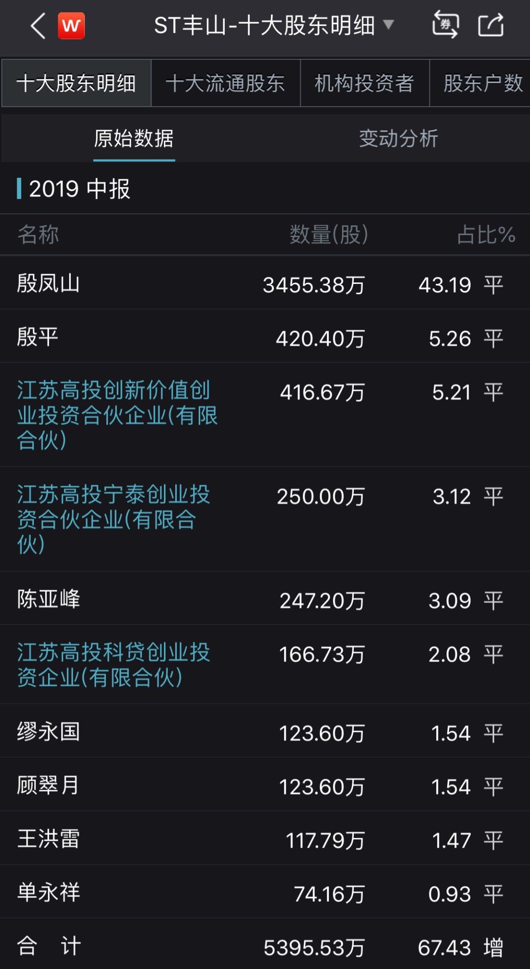 中报显示,截至今年6月30日,ST丰山的股东总户数仅有10908户,在所有3600多家A股上市公司之中排名倒数。